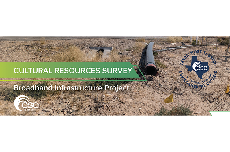 No standing structures of historic age were noted on or directly adjacent to the project area, but five archeological sites had previously been recorded within the TxDOT ROW. The archeological survey produced no artifacts or cultural features within the disturbed ROW. Due to the absence of significant surface or subsurface artifacts or features, the probability for significant cultural sites within the project area was considered extremely low. Based on research results, it was ESE’s opinion that no cultural resources will be impacted by development within the proposed 18.7-Mile (30 km) powerline. ESE recommended the project be allowed to proceed as planned, a recommendation with which the Texas Historical Commission agreed. Regulatory clearance was granted for the undertaking.